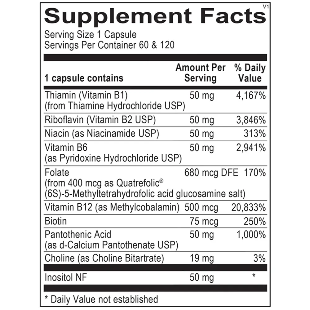 This formula promotes optimal methylation, cardiovascular health, and nervous system function by featuring active forms of B12, folate, and other essential B vitamins.