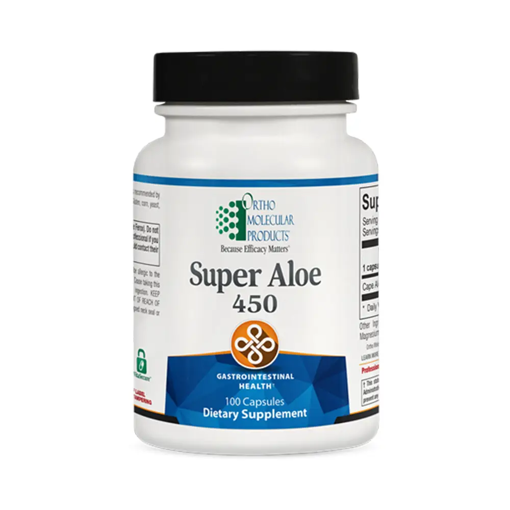 Super Aloe 450 by Ortho Molecular provides reliable support for healthy elimination and digestive comfort.