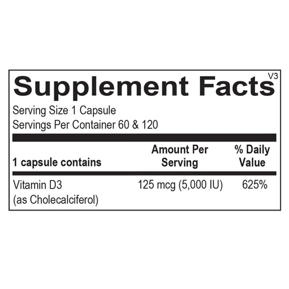 Ortho Molecular Vitamin D 5,000 IU delivers a high-potency dose of vitamin D3 to support immune function, bone health, and overall wellness.