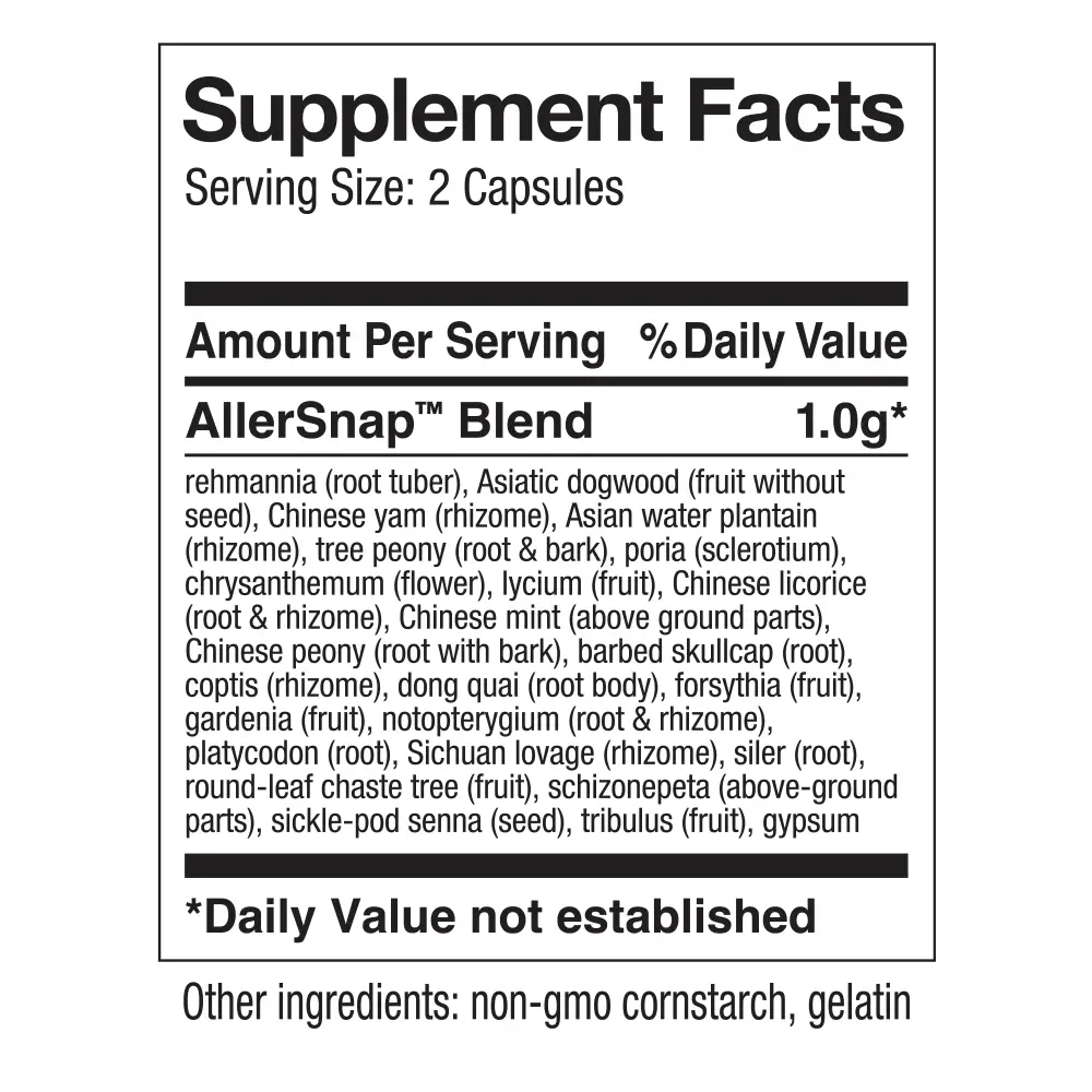Aller Snap offers a thoughtfully selected blend of Chinese herbs, including chrysanthemum, licorice, peony, dong quai, scullcap, and others, to support a calm and balanced response to environmental stimuli.