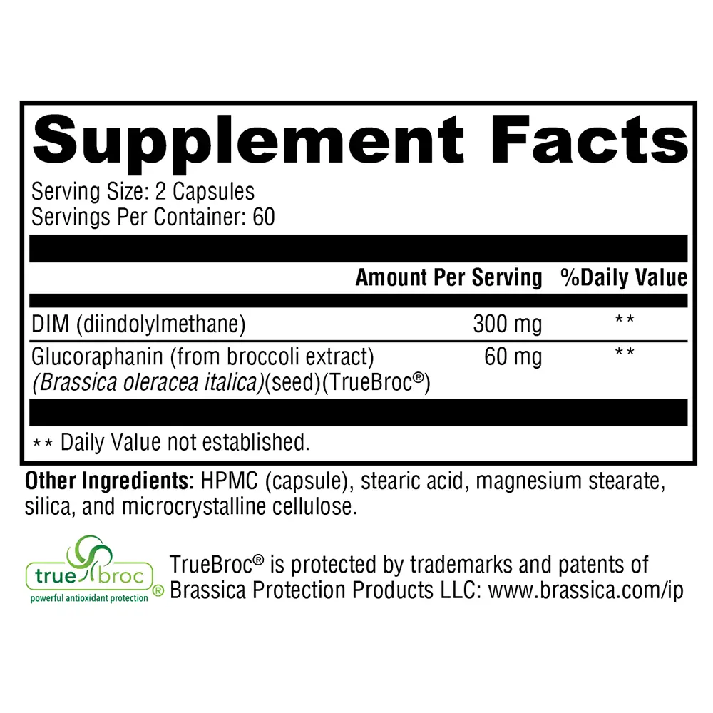 This formula isn’t just about estrogen. By combining DIM with TrueBroc® (broccoli seed glucoraphanin), it also helps neutralize oxidative stress, protect DNA integrity, and support phase II detoxification in estrogen-sensitive tissues.