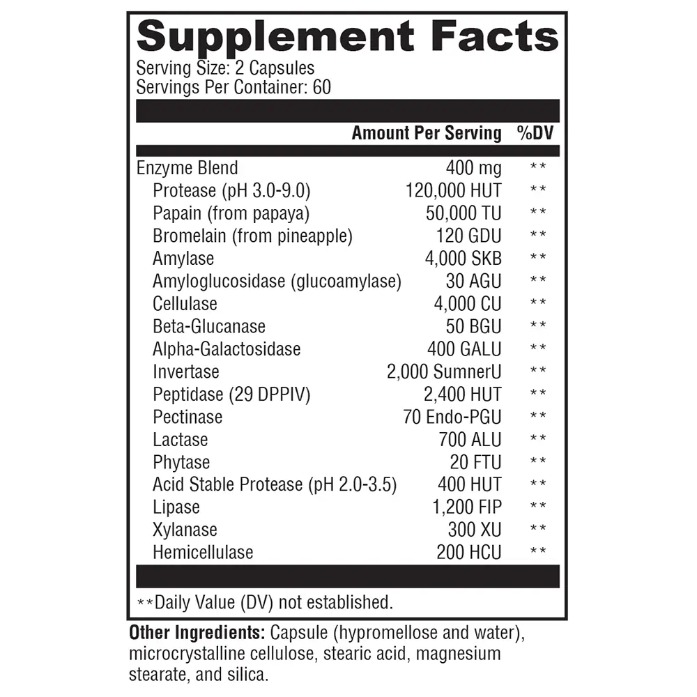 This comprehensive formula helps your body break down a variety of food types, including challenging ones like beans, cruciferous vegetables, fibrous plant foods, and dairy, allowing for more complete nutrient absorption and reduced digestive stress.